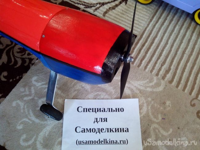 Хвостовое шасси делаем из спицы и бамбуковой шпажки. Колесо самодельное, снято с другой модели.