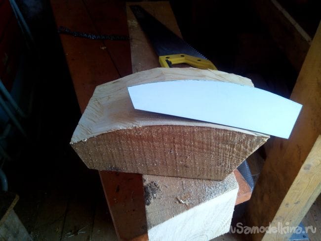 Переносим шаблон бокового профиля на деревянный брусок и выпиливаем ножовкой.