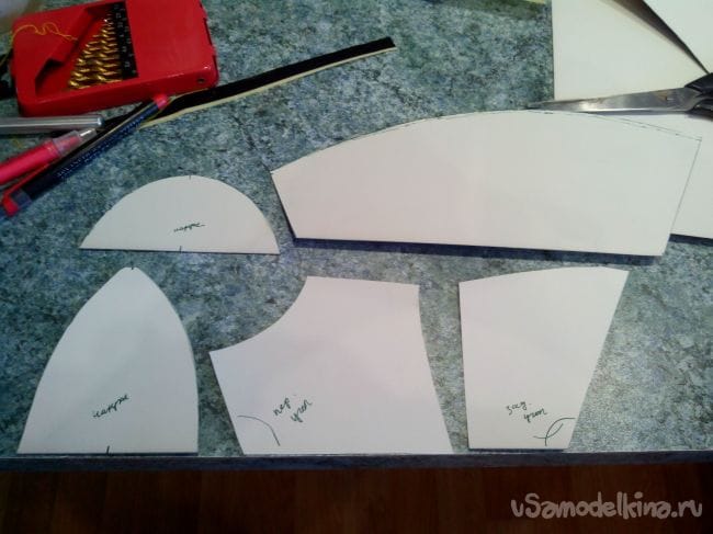 Чертим по шаблонам переднюю и заднюю часть и отпиливаем лишнее.