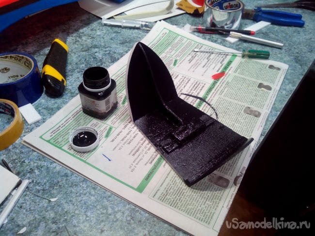 Красим внутреннюю часть «кабины» в черный цвет.