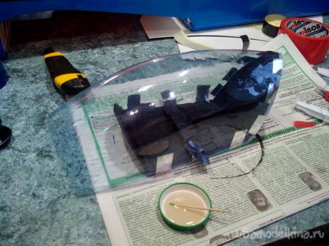 Склеиваем все детали капота вместе и оставляем сохнуть.