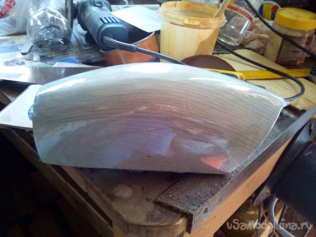 После того, как клей высохнет, обрезаем ненужное и шкурим.