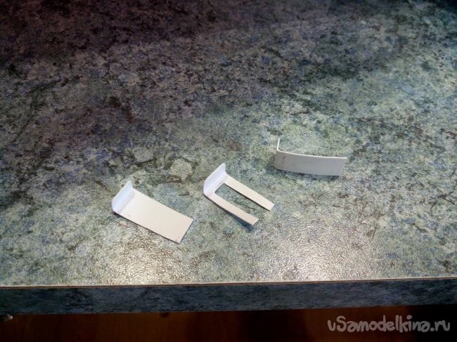 Из строительного уголка вырезаем упоры для фонаря в передней части.