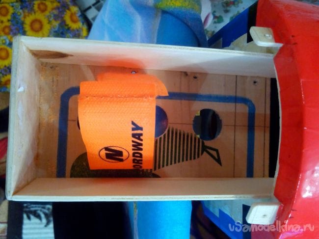 Внутри моторамы приклеиваем липучку для крепления регулятора.