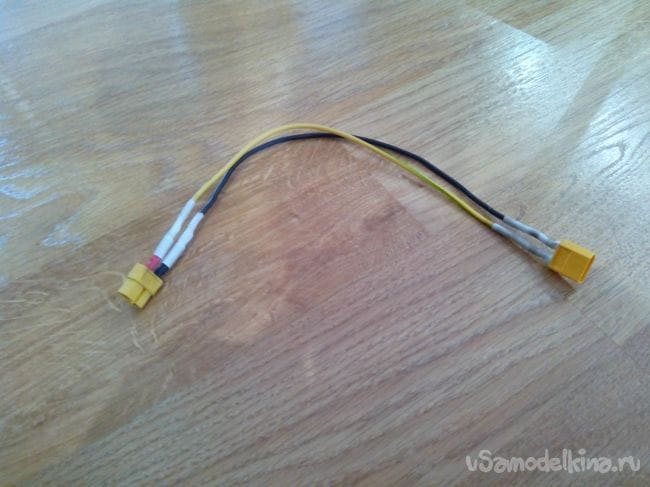 Из толстых проводов паяем удлинитель для аккумулятор, поскольку располагаться он будет в «кабине».