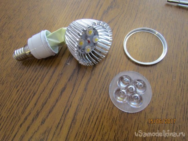 Лампочку раскручиваем, так как всё на резьбе и удаляем плату с диодами и драйвер.