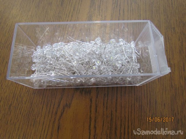 Для новой лапочки я использовал светодиоды на напряжение 3.7 -5В. Они 5 мм в диаметре.