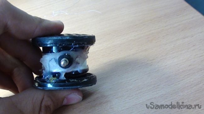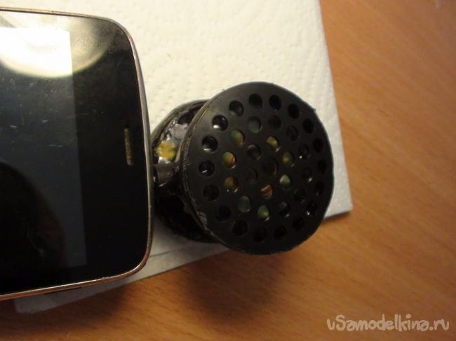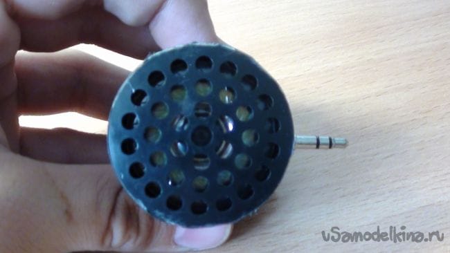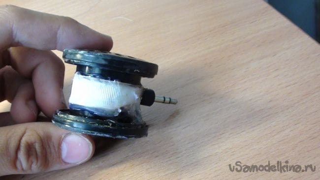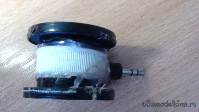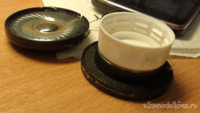 Приклеиваем к одному динамику крышку от бутылки, как на фото.