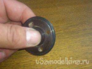 Отметив три сантиметра от "спины", я просверлил в каждом из "рогов" отверстия, диаметром 14 мм, используя дрель и ступеньчатое сверло: