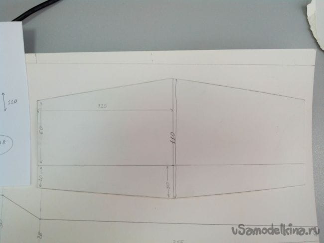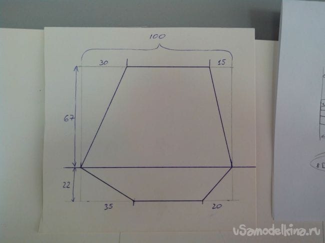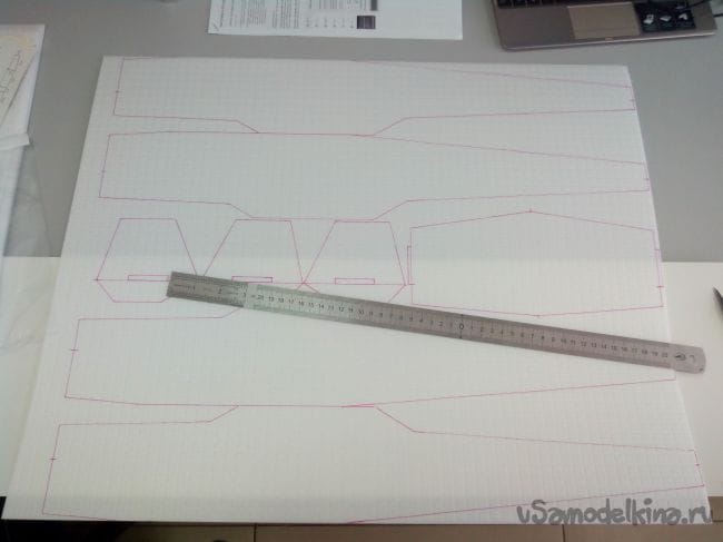 Шаблон киля чертим на ватмане в натуральную величину (размеры на фото указаны).