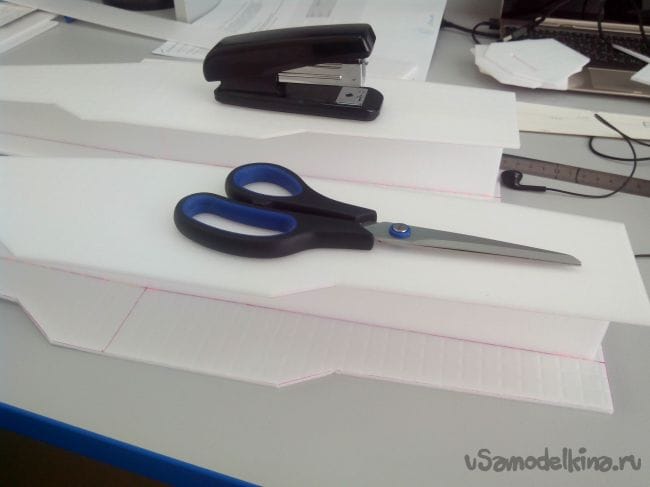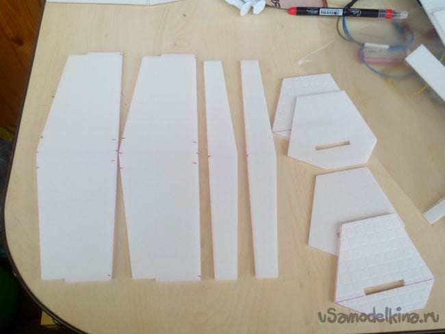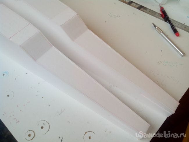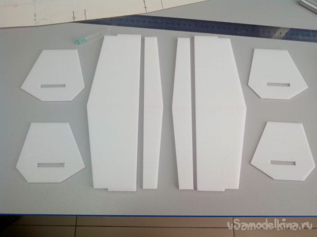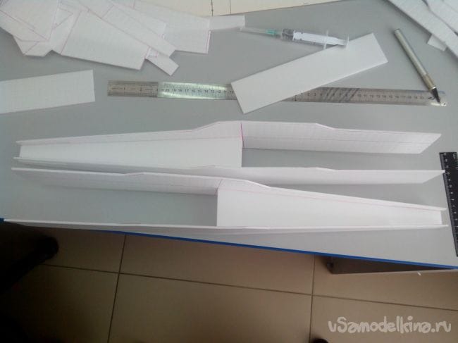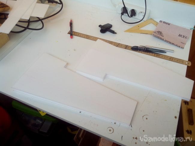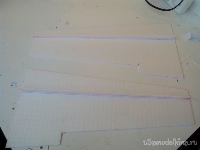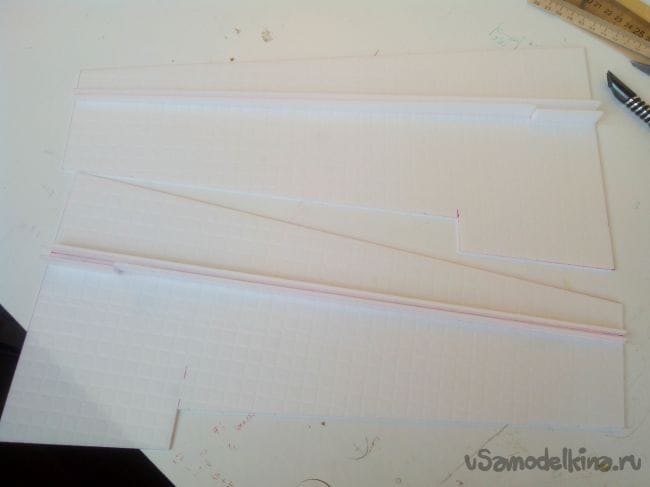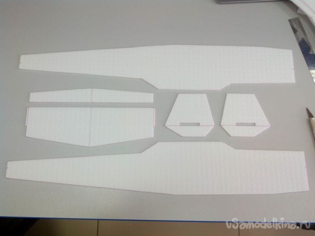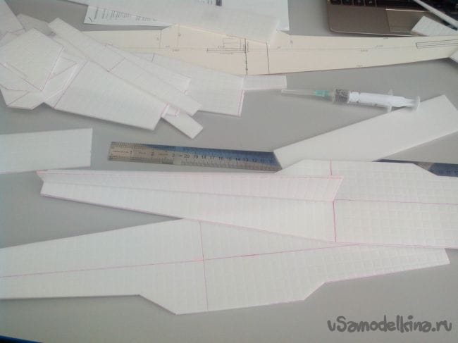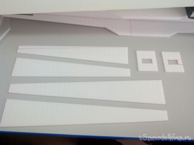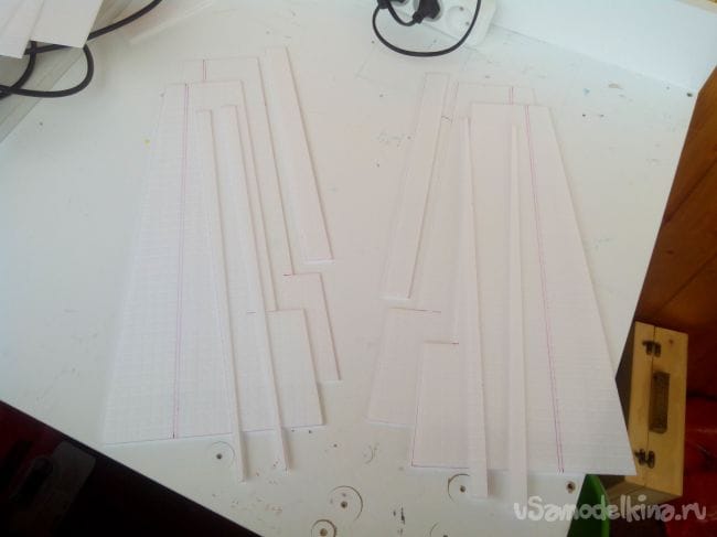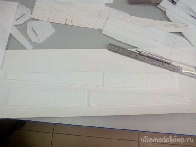 Вырезаем детали крыльев и лонжероны из потолочки.