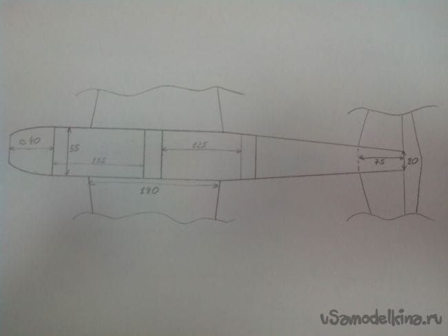 Боковину фюзеляжа лучше тоже начертить на ватмане.
