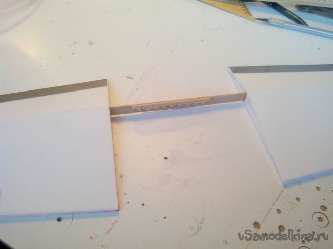 Между ними расстояние 3 мм, в центральной части - 6 мм (в этом месте будет соединительная часть лонжерона из линейки).