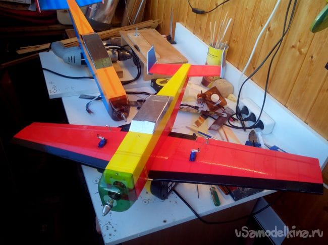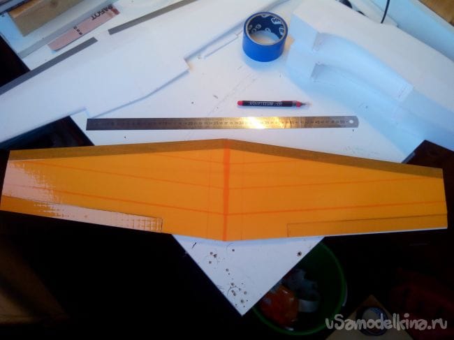 Для нужд воздушного боя было решено укоротить крыло, а форму фюзеляжа упростить. Кроме того, данная модель будет без рулей направления, они тут не нужны особо. Управление будет на трех сервоприводах: два - на элероны, один - на руль высоты.