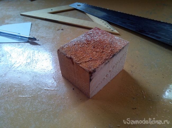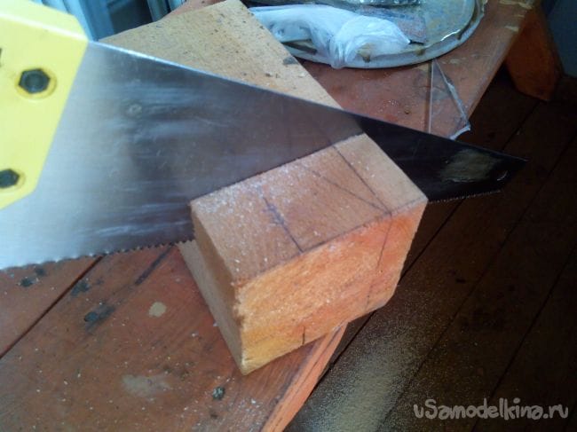 Итак, отпиливаем от деревянного бруска необходимый кусок.