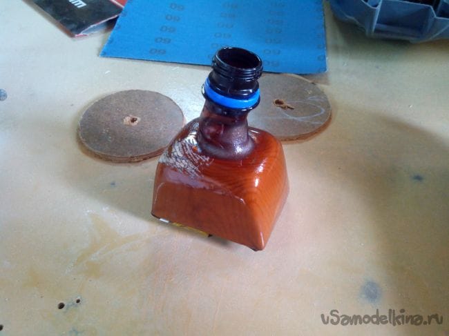 Затем отрезаем уже ненужное горлышко и обрабатываем края отверстия (я все делал дремелем).