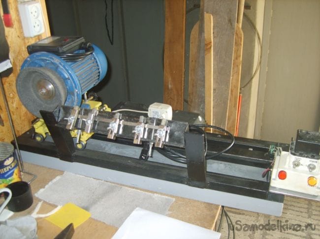 Основа заточного агрегата сделана из мощного металла от железнодорожных подкладок для рельс. Нашлись в хозяйстве.
