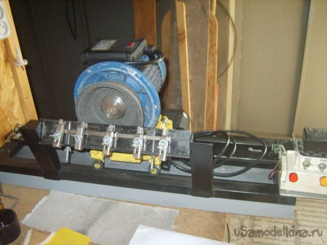 Получилось вот такое устройство. Полуавтомат по заточки ножей, для строгального инструмента.