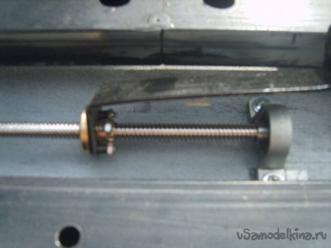 Весь агрегат перемещается по направляющим на закрытых шарикоподшипниках, 4 опорных и 4 направляющих. Это надо сделать очень точно, так как люфт тут не приемлем.