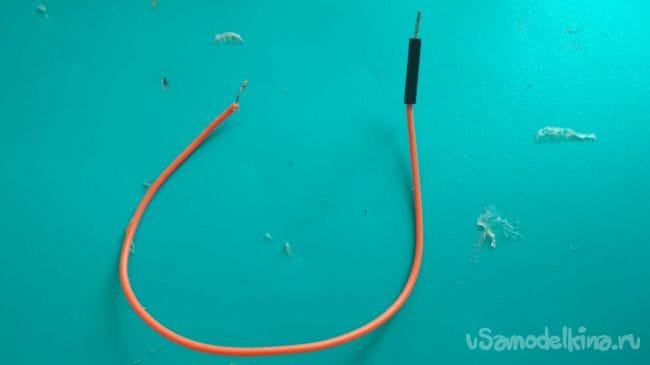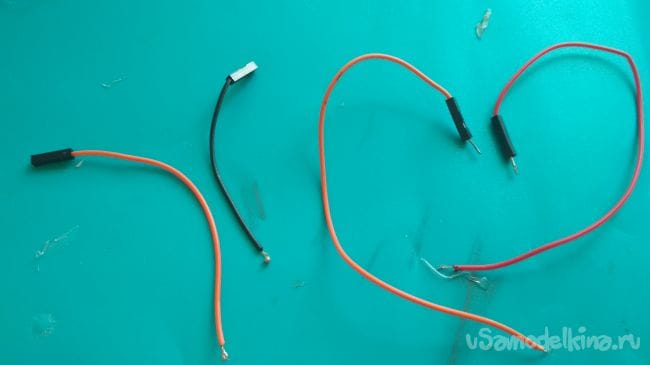Берём два провода "папа-мама", разрезаем их по полам, зачищаем и лудим их: