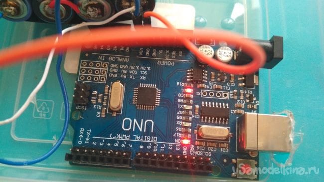 Подключаем наш источник питания к плате Ардуино следующим образом: плюс к выходу uin, а минус к Gnd