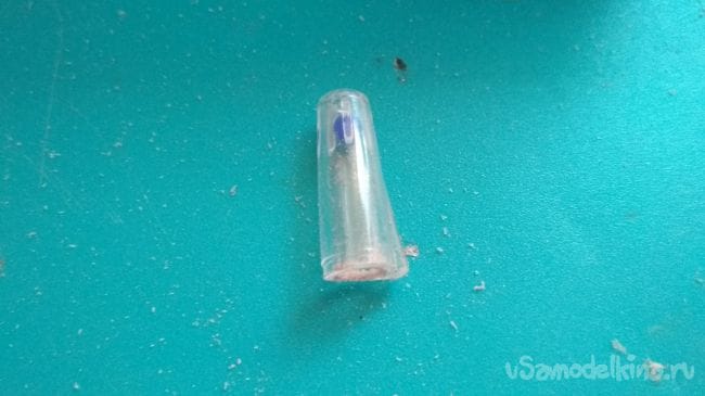 Берём прозрачный колпачок от ручки и с помощью шкурки или напильника стачиваем ему низ: