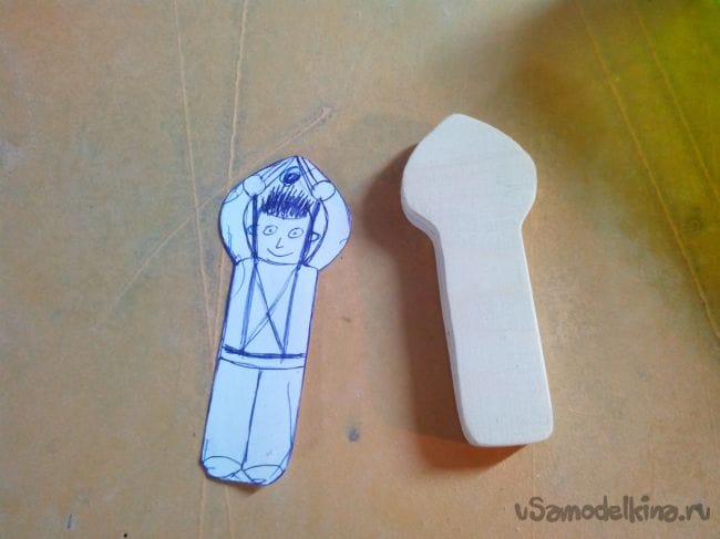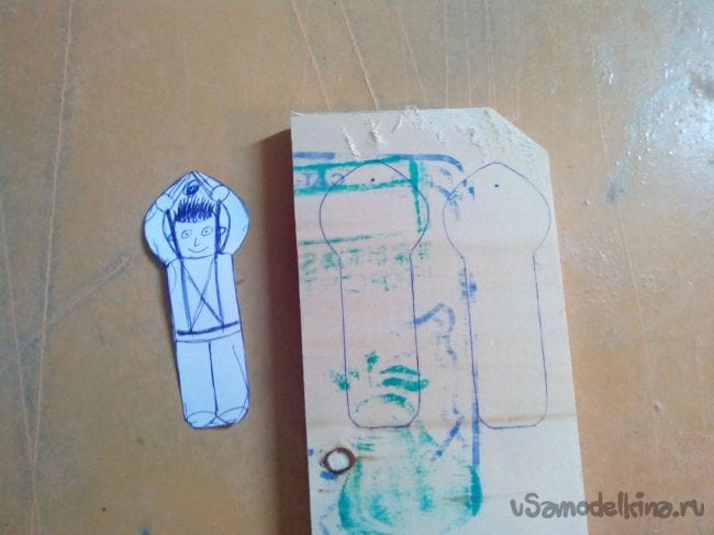Итак, на куске толстой фанеры рисуем контуры парашютиста. Я художник весьма посредственный, потому и десантник у меня истинный воин – внушает страх и ужас!