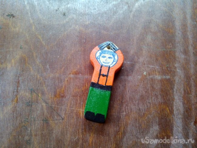 Обрабатываем фигурку наждачкой, чтобы она не цеплялась за стропы и купол парашюта, и рисуем штаны, физиономию и прочее.