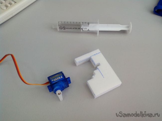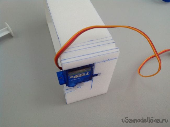 Примеряем сервопривод и делаем небольшую канавку для провода в боковой части.