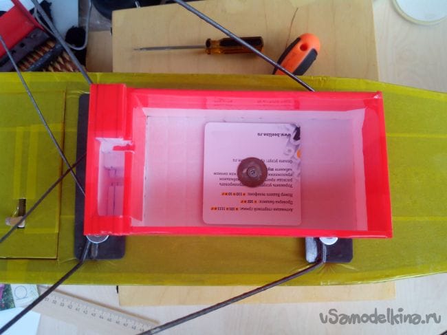 Прикручиваем отсек к днищу модели поближе к центру тяжести.