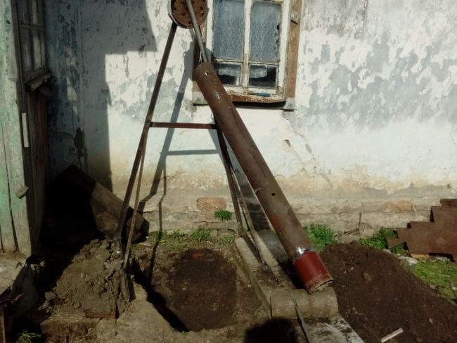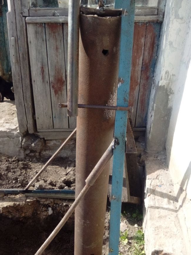 Ударная колонна у меня пару раз переделывалась. Сперва в качестве ножа я приварил к концу трубы обычный бидончик. Как бы смешно это не выглядело, но бидончиком я пробил первые 10 м, но потом наткнулся на камни и у меня его загнуло.