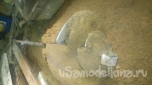 Конечно, бидончик, это очень слабая конструкция, но это только пример, как все работает. В качестве ножа нужно использовать прочную и тонкую трубу (отлично подойдет нержавейка). Длина ножа может быть 15-25 см. Больше особо нет смысла, так как вряд ли вы наберете за раз столько грунта.