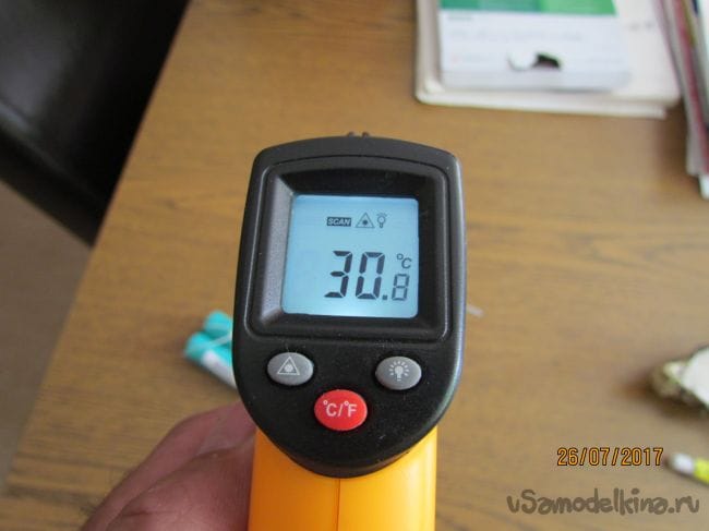 Проверяем нагревание подключив две батарейки через резистор 3 Ом .Температура после трёх часов поднялась до 30 оС.