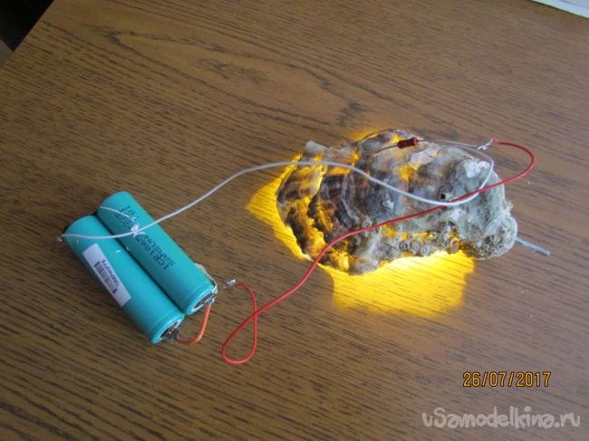 Приклеиваем трёхватный светодиод прямо на раковину.