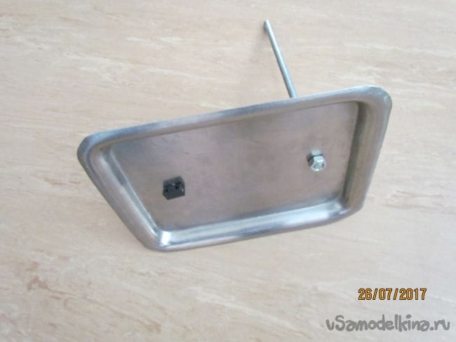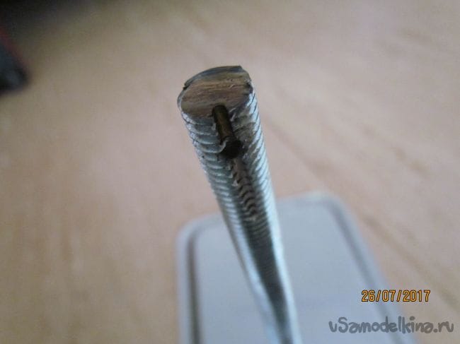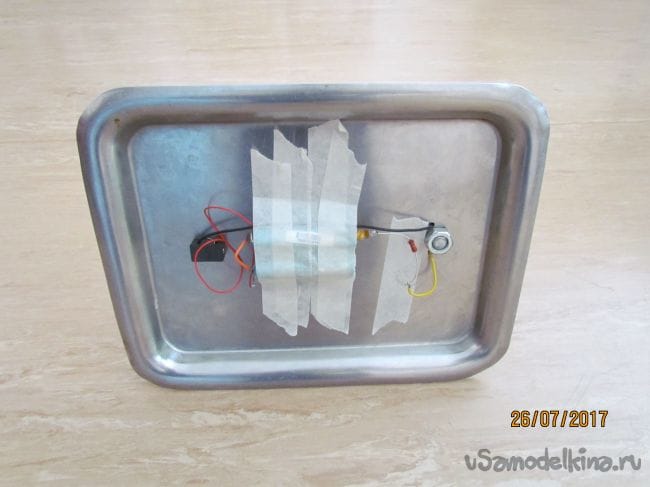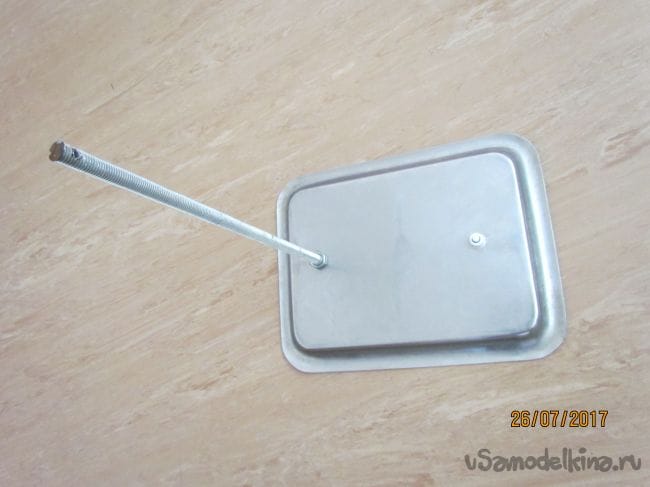 Для подставки я использовал платик из нержавейки, в него можно спрятать выключатель и батарейки. Шток держателя я сделал из отрезка шпильки надев на него термоизоляцию от трубки кондиционера чтобы спрятать провода.