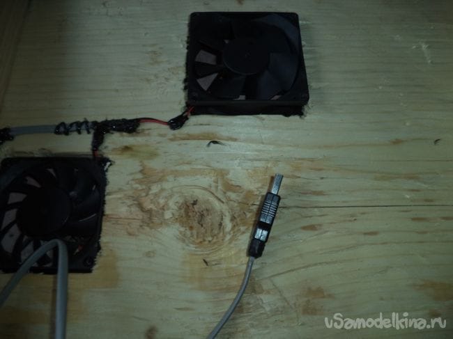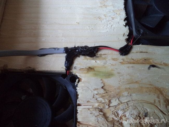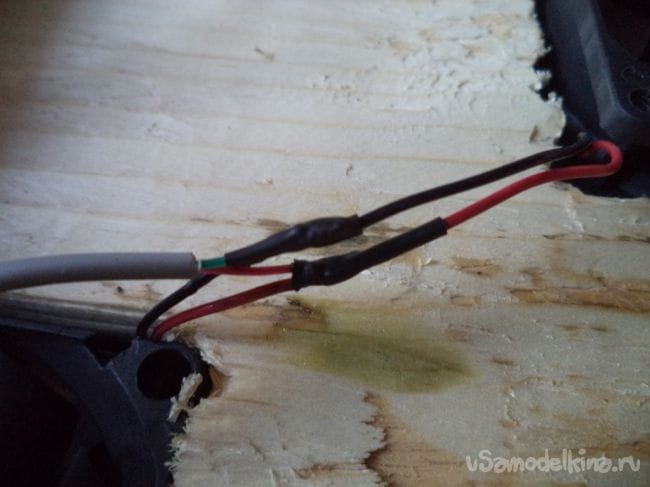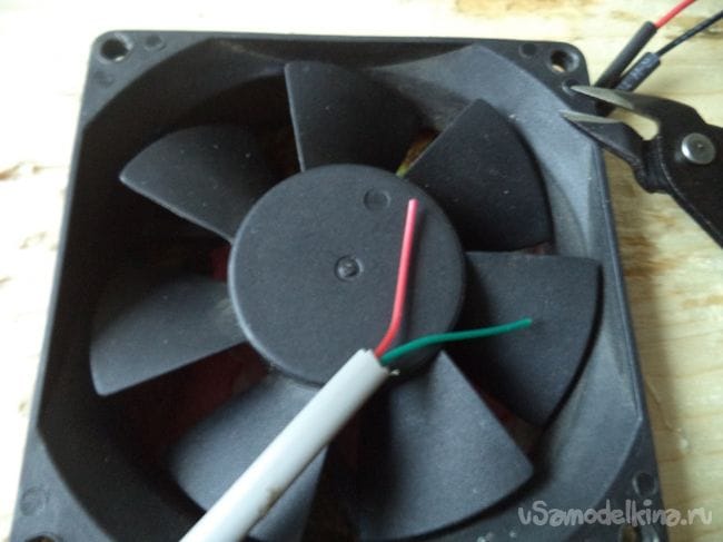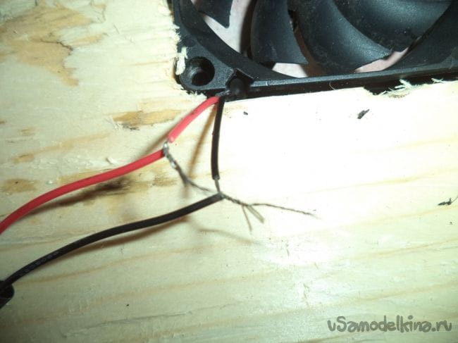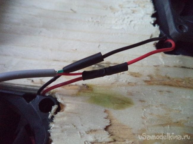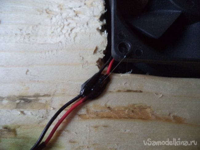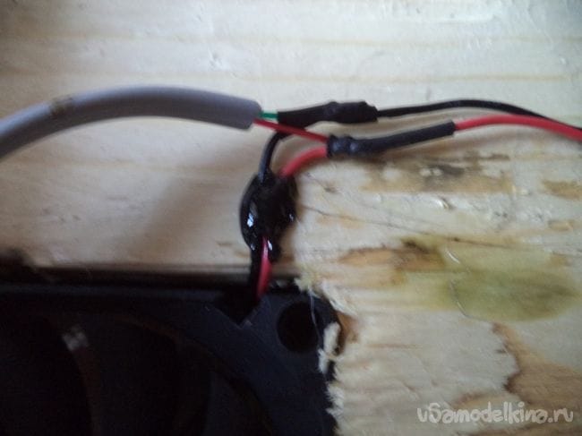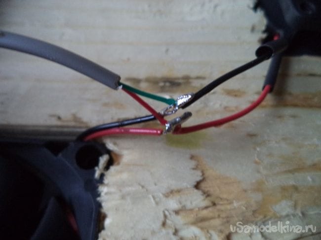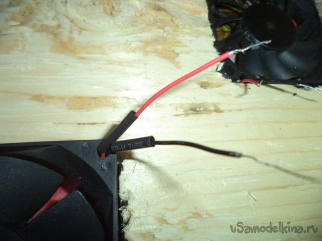 Теперь надо запаять вентиляторы вместе и подключить к питанию.