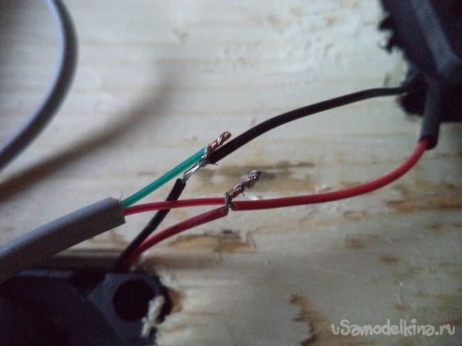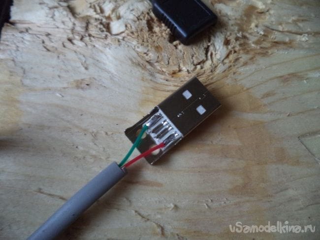 Теперь с помощью электрического паяльника припаиваем usb разъем к проводу, но опять же не путаем полярность, иначе вентиляторы работать не будут.