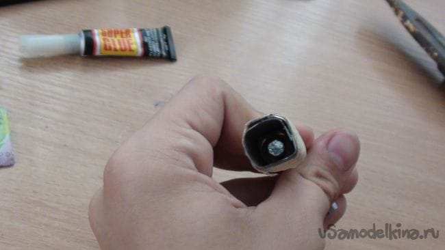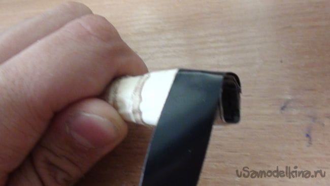 После того, как мы обмотали, фиксируем, и склеиваем.