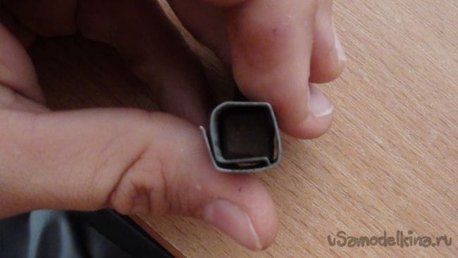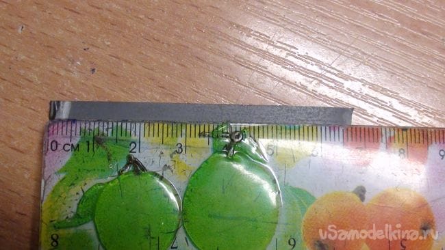 Берем металлический кусок и вырезаем из него кусок 65 мм в длину, и 25 мм в ширину.