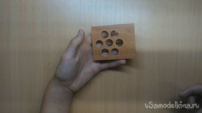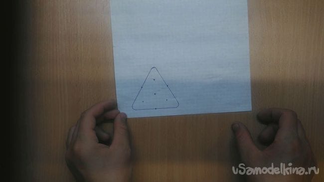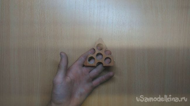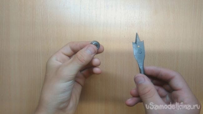 Шаг 2: Далее с помощью маленького гвоздика делаем метки, чтобы дальше просверлить отверстия. И по шаблону карандашом обводим контур спиннера. Далее штангенциркулем мерим диаметр наших подшипников и берём сверло таким же диаметром. Затем по раннее отмеченным меткам просверливает отверстия строго под углом 90o.