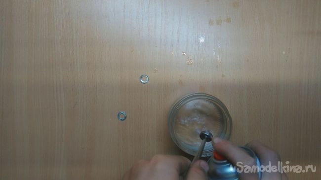 Шаг 4: Далее в ацетоне ( можно в бензине ) промываем центральный подшипник, и чтобы он дольше крутился брызгаем на него WD-40. И вставляем в заготовку подшипники. Если подшипник сидит не плотно в отверстии, его можно аккуратно приклеить супер клеем.