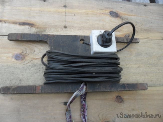 В качестве валика приемного барабана электрического кабеля использовал кусок черенка от лопаты.