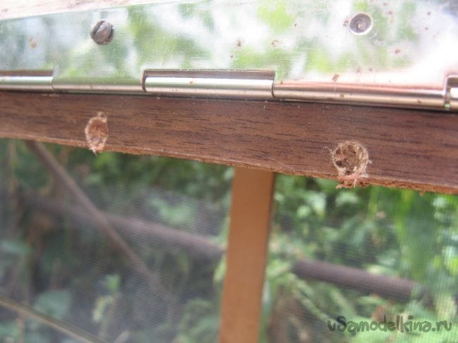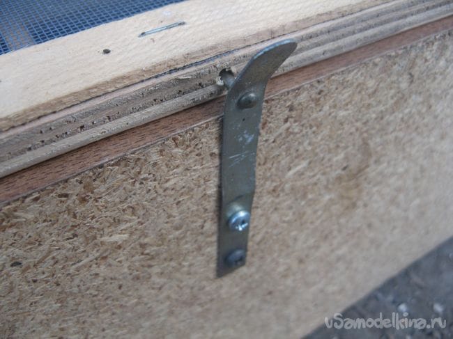 Передняя дверца открывающаяся. Делается очень просто. Изготавливаем рамку по размерам коробки и обтягиваем москитной сеткой. Если нужно. Делаем распорки что дверца не деформировалась.