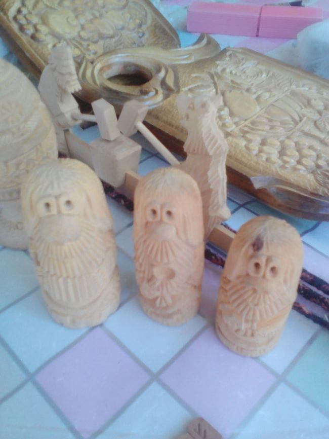 Д. Коля занимается старинным народным промыслом "резьбой по дереву" вырезает иконы, шкатулки, игрушки, деревянные разделочные доски с красивым резным рисунком, фигурки домовят, руны, кумиры Славянских богов, шахматы, нарды, и многое другое, возможна работа под ваш заказ.