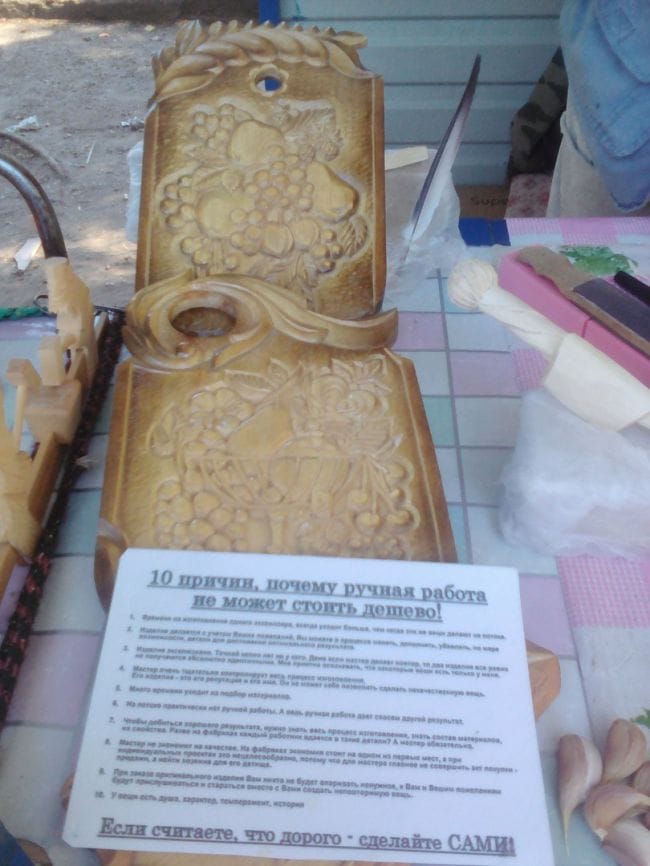 Как то прогуливаясь по улицам родного города, я решил зайти на социальный рынок и там встретил дядю Колю, он там продавал свои замечательные изделия. Продажа на рынке идет "не ахти" потому как цена за ручную работу высокая, а покупателям нужно все подешевле. Вот я и решил помочь д. Коле и выложить его работы в интернете, за что отдельное спасибо Администрации сайта «В гостях у Самоделкина» за предоставленную возможность продавать самоделки и творческие работы.