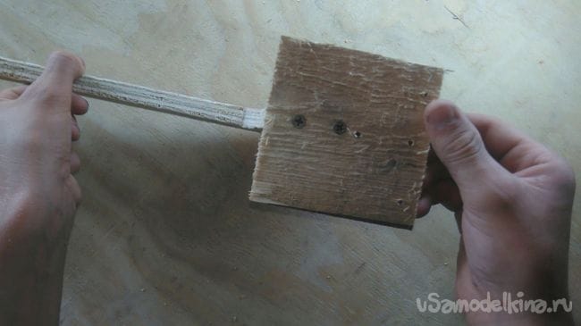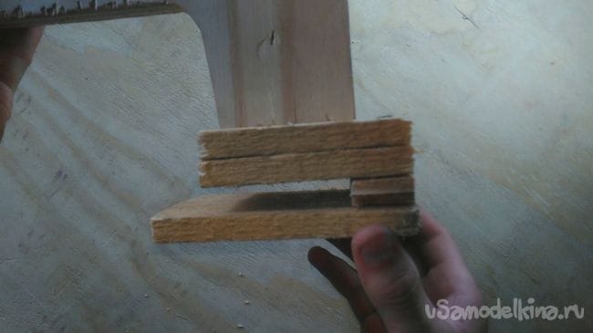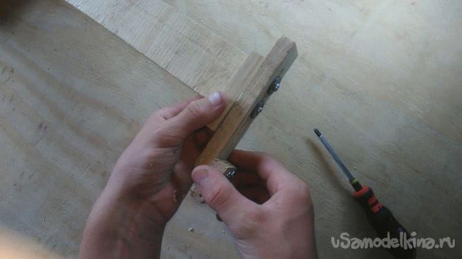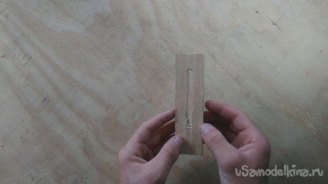 Шаг 2: Далее в другом брусочке проделываем внутренний пропил длинной 10-15 см. Затем к ней прикручиваем деталь, которую мы делали в первом шаге.