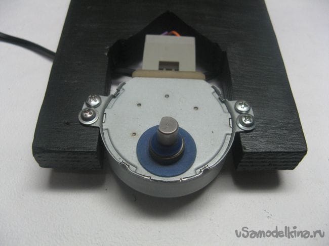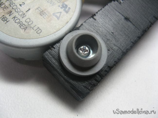 После высыхания краски прикручиваем моторчик на постоянное его место. Саморезы я взял от старого принтера. Очень удачные из-за широкой шляпки.
