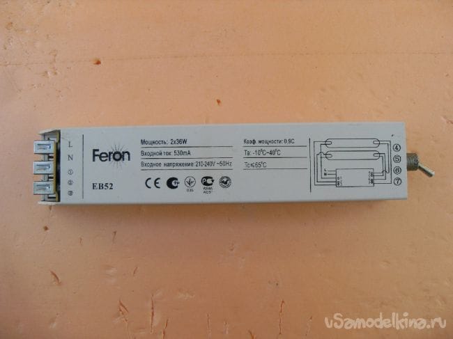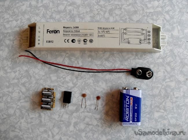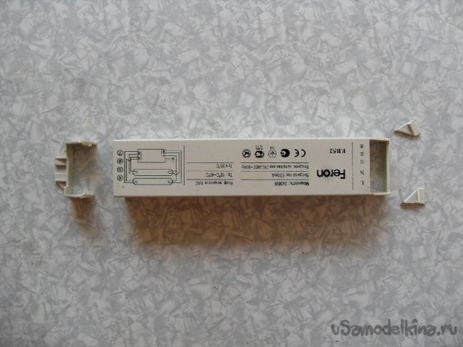 Корпус от балласта для люминесцентных ламп очень удобный для подобных самоделок, по крайней мере для моего power bank в самый раз. В него очень хорошо заходит крона и USB гнездо. Кстати гнездо можно взять любой, у меня валялся поломанный автомобильный USB зарядник и я его взял именно от туда. Гнездо тройное и установлено на плате, сама платка прям по размерам подошла к моему корпусу, на фото ниже это видно. Можно взять и одинарное гнездо, сделать для него отверстие в корпусе и зафиксировать термоклеем!