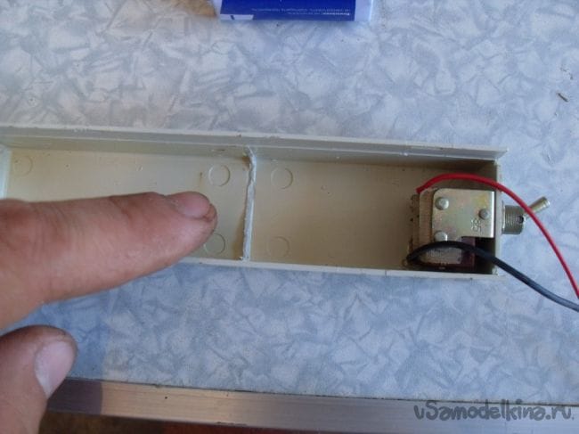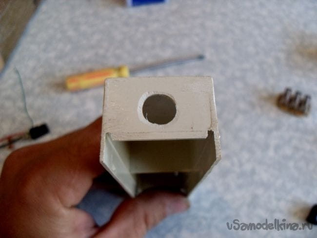 Само гнездо при помощи термоклея приклеиваем в торец корпуса.