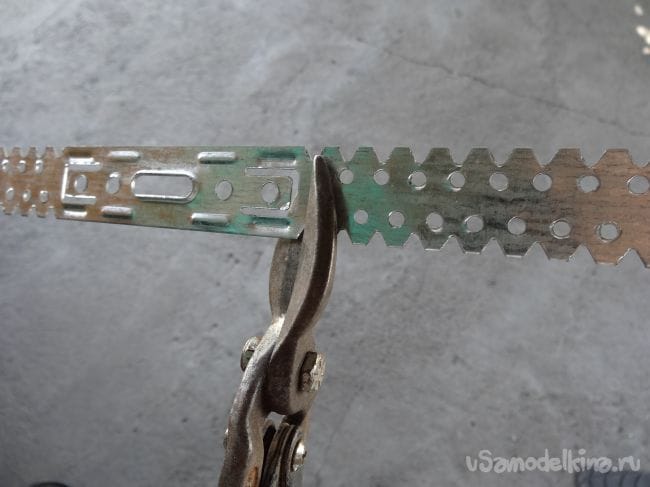Затем загнул лишнюю часть подвесов, что также увеличило прочность, так как появилось некое ребро жесткости.